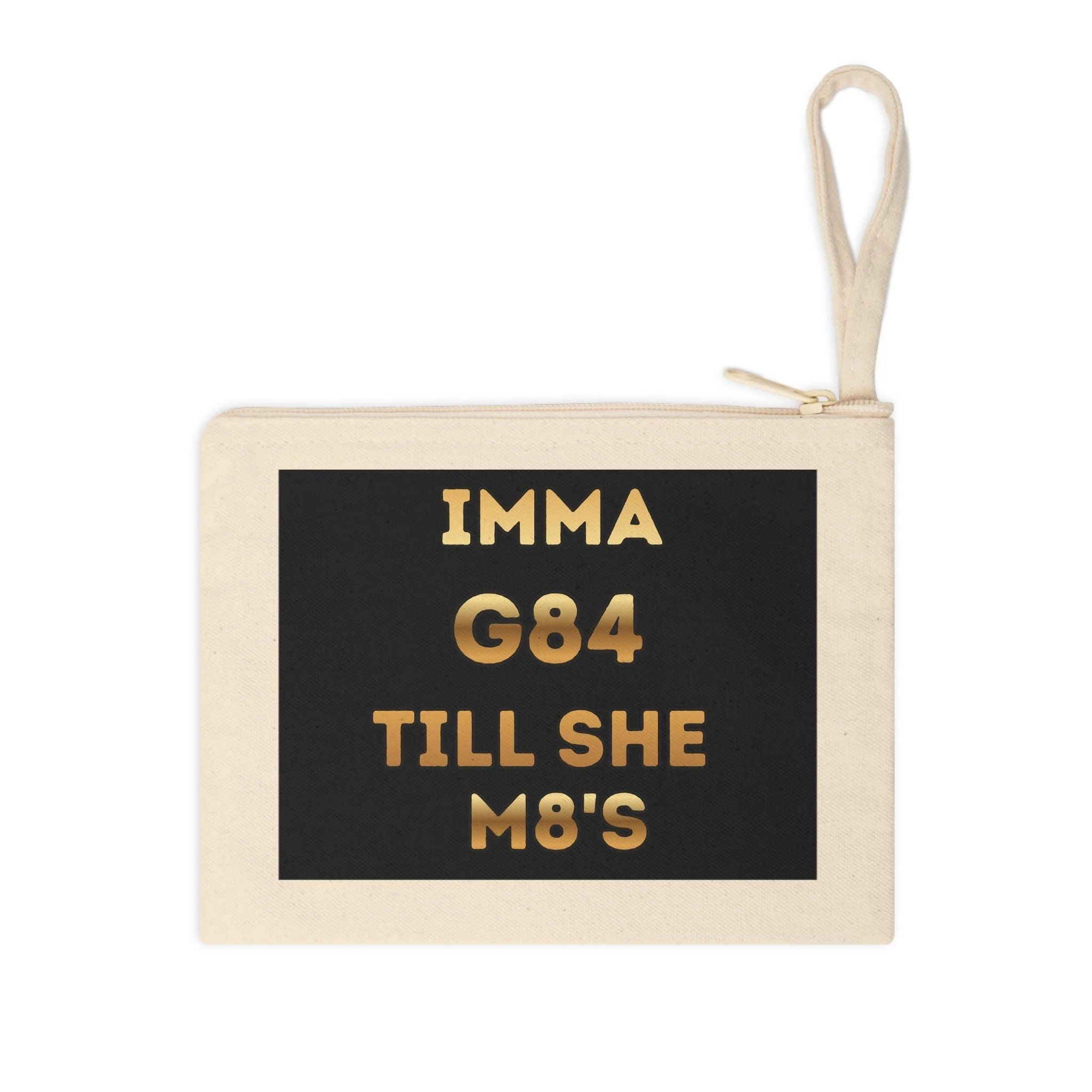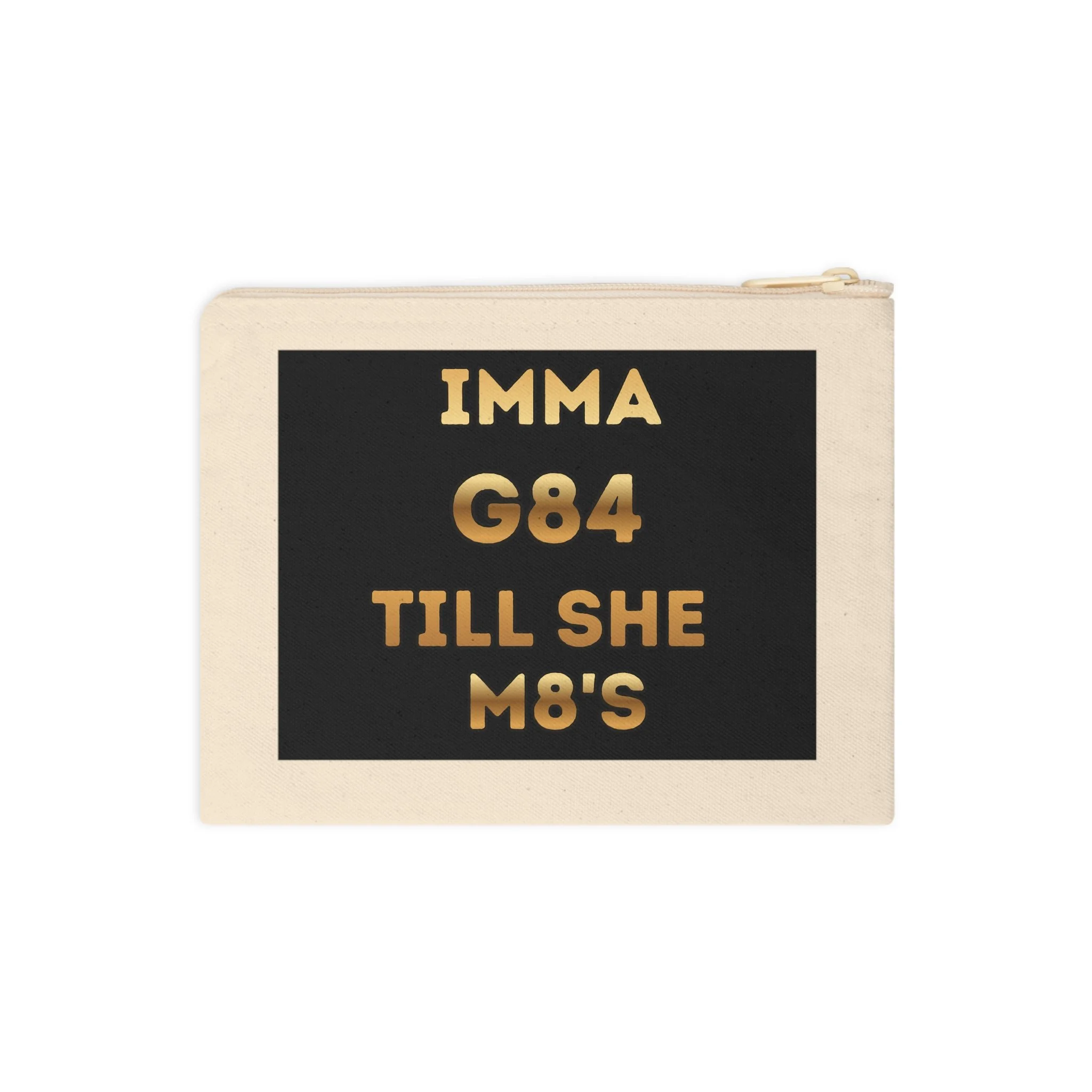 Accessory Zipper Pouch — "Imma G84 Till She m8's" Gold Text Cosmetic Bag