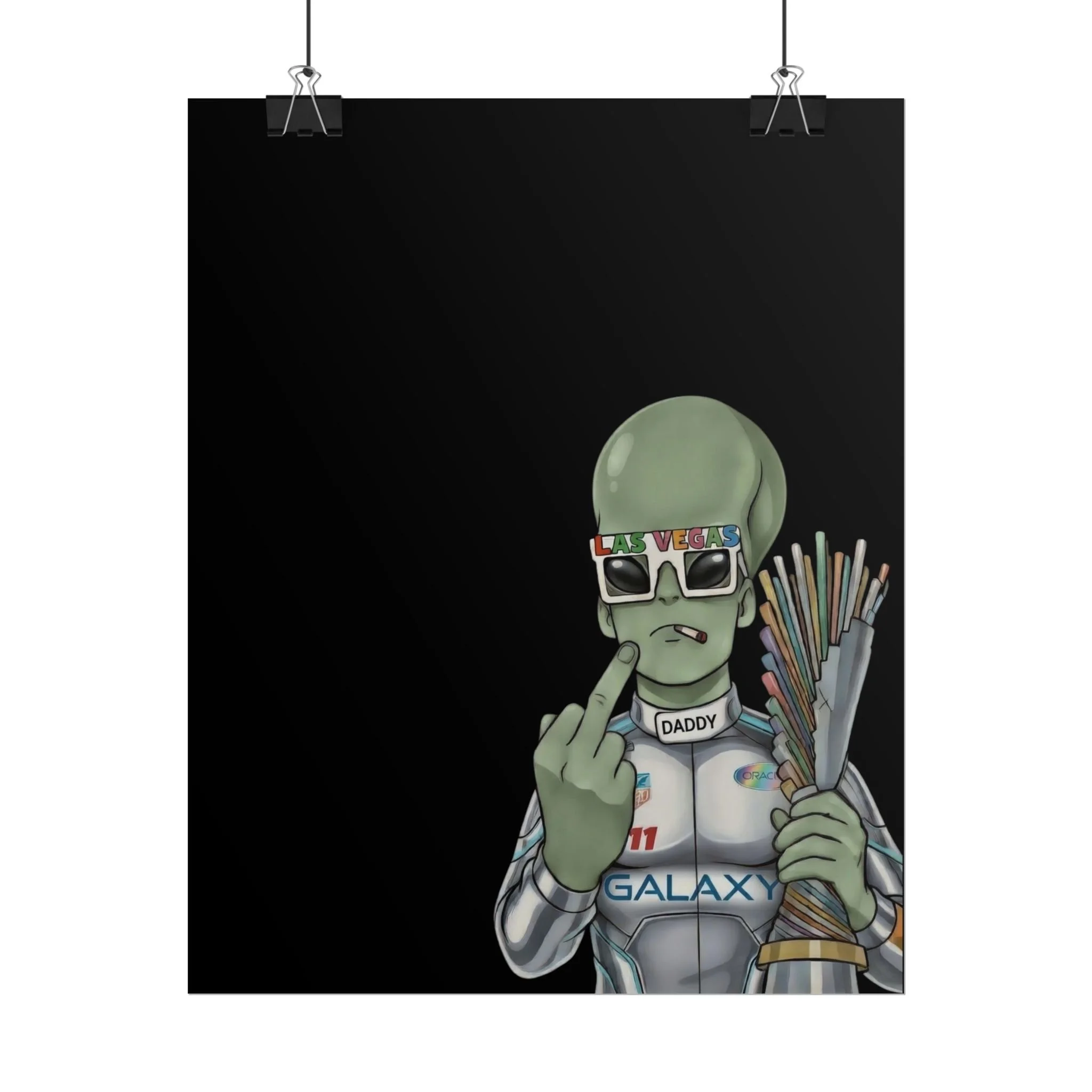 Alien Champion Poster — 'Daddy' Racer with Trophy Art Print