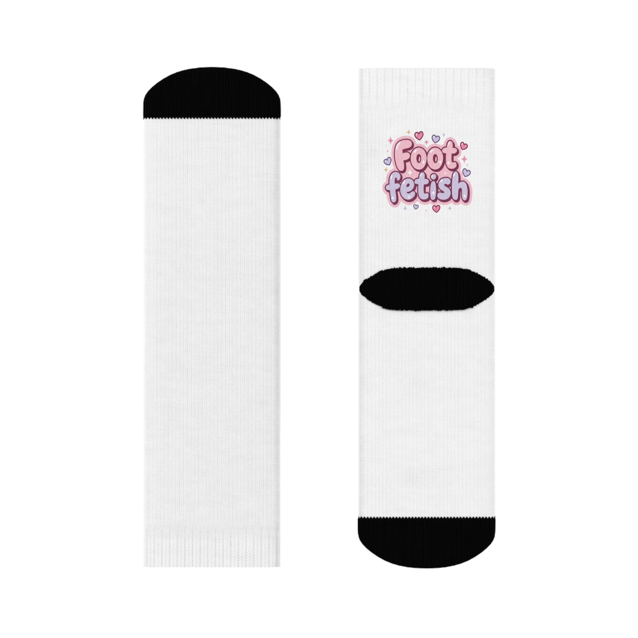 Crew Socks — Cute 'Foot Fetish' Bubble Letter Crew Socks (White with Black Heel & Toe)