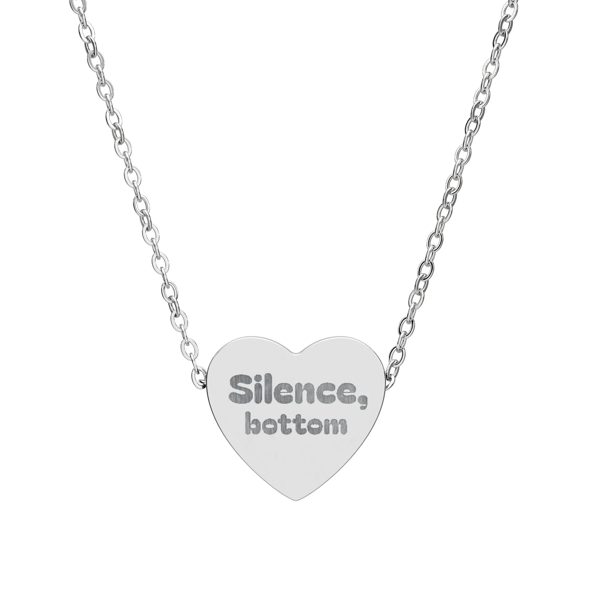 Engraved Heart Necklace — "Silence, bottom" Pendant