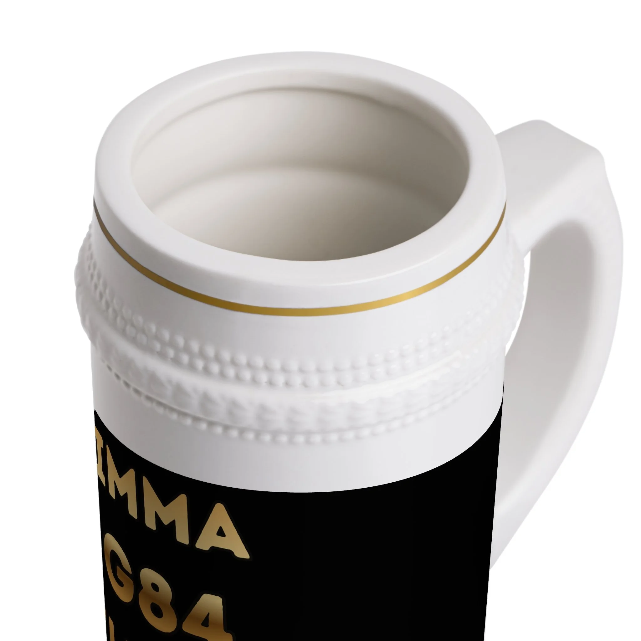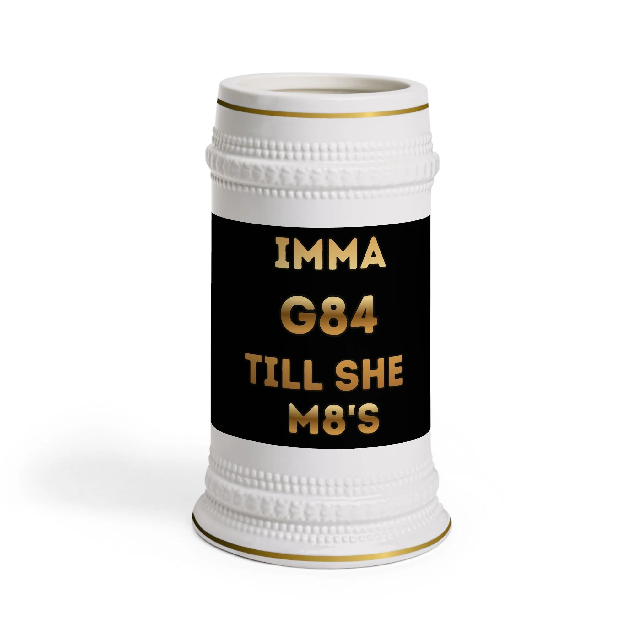 Funny Beer Stein Mug — “Imma G84 Till She M8’s” Gold Lettering 22oz Ceramic Stein