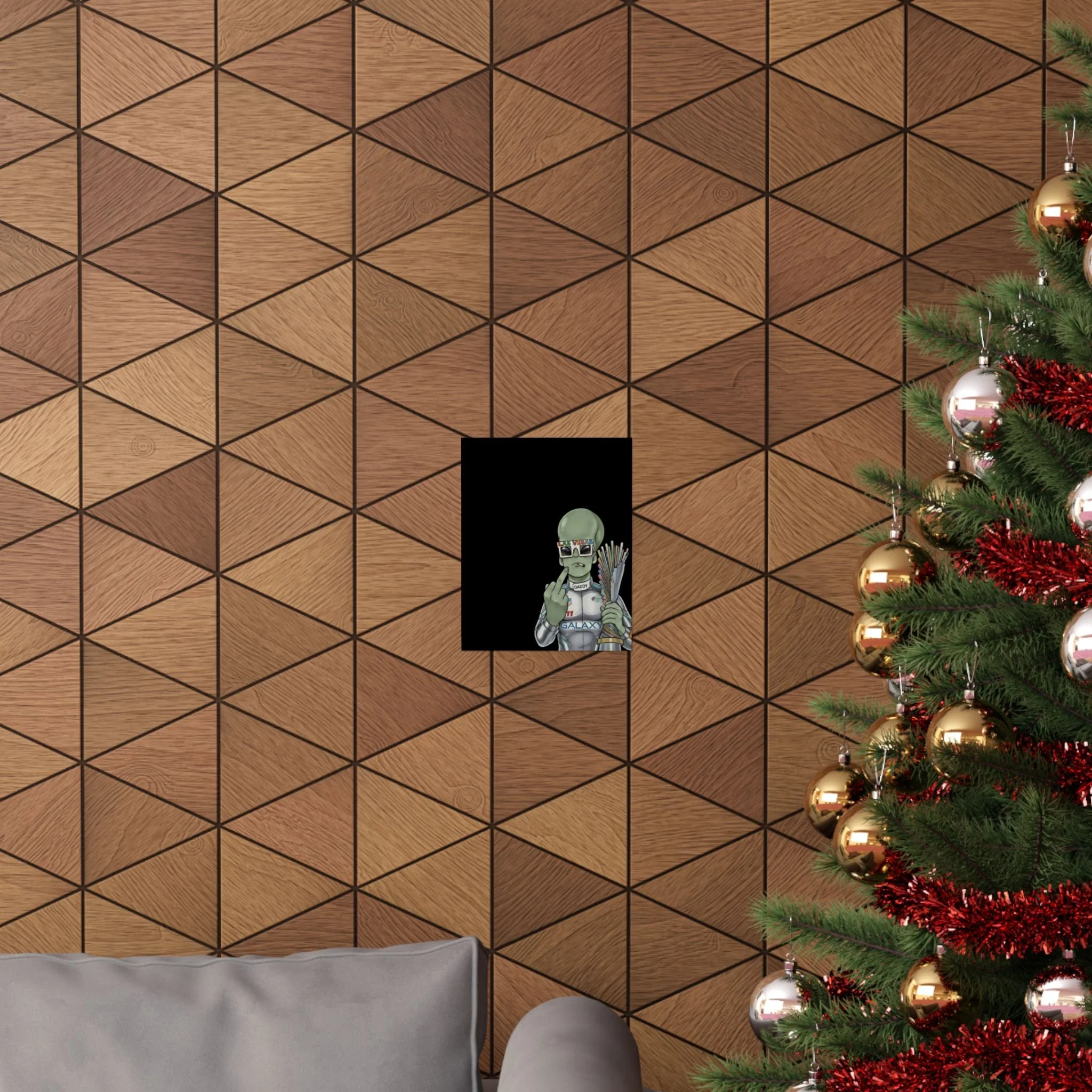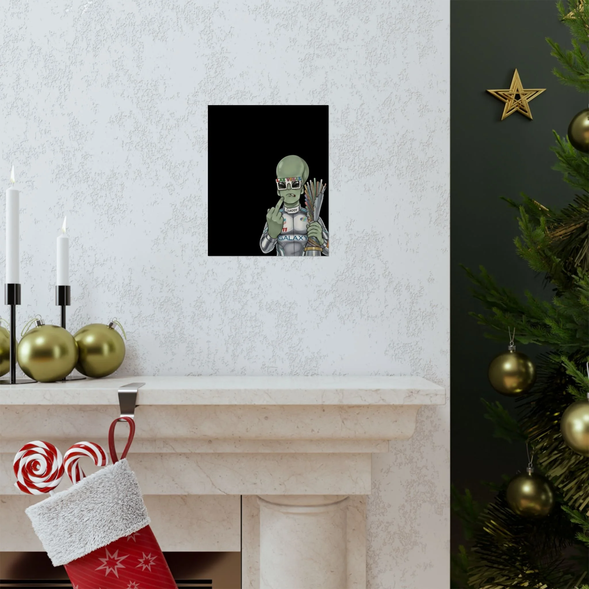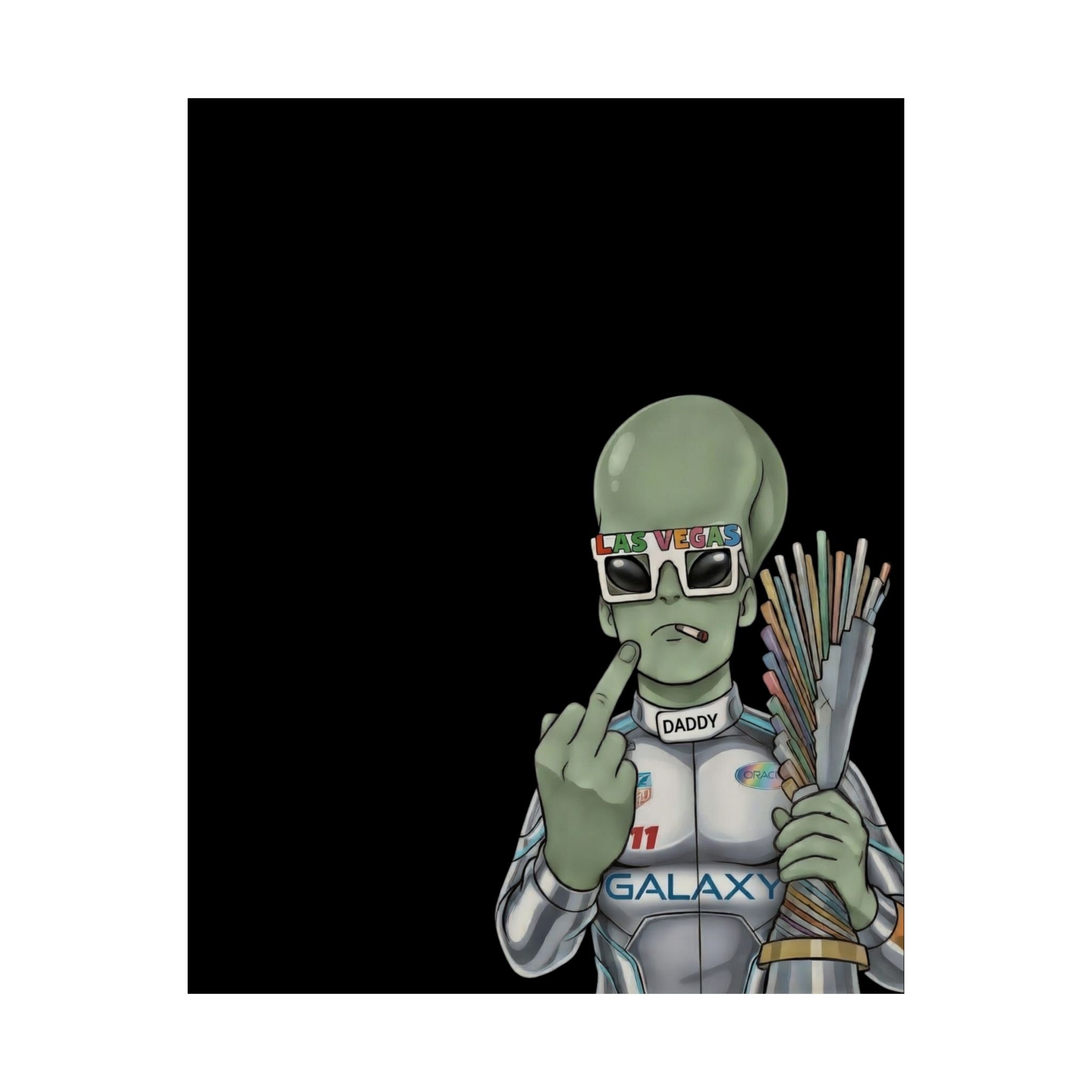 Funny Formula 1 Alien Driver Matte Poster — Vertical Racing Art Print