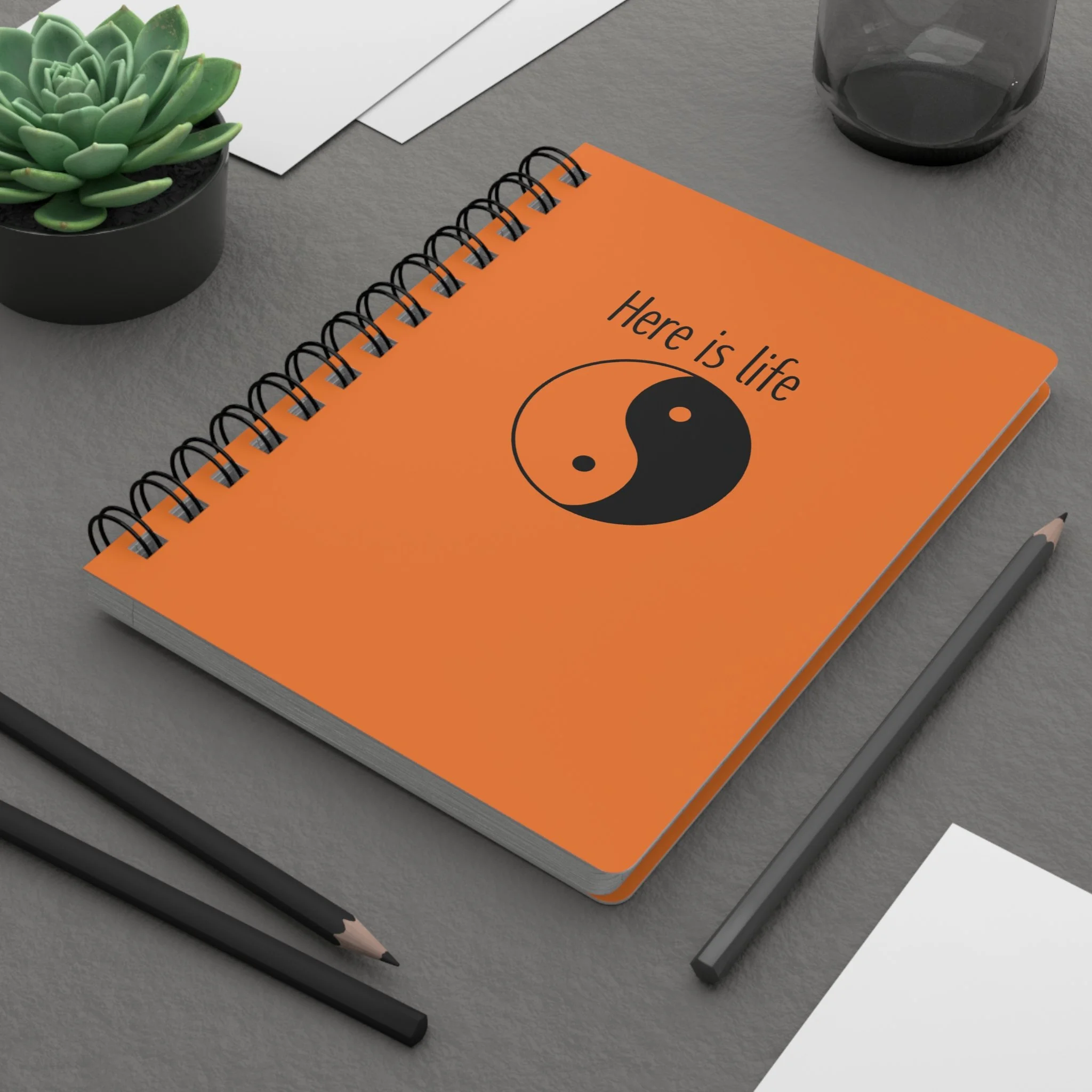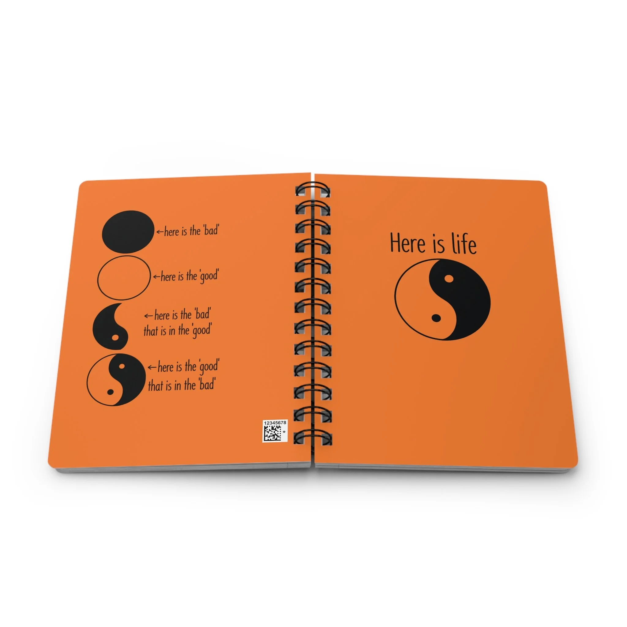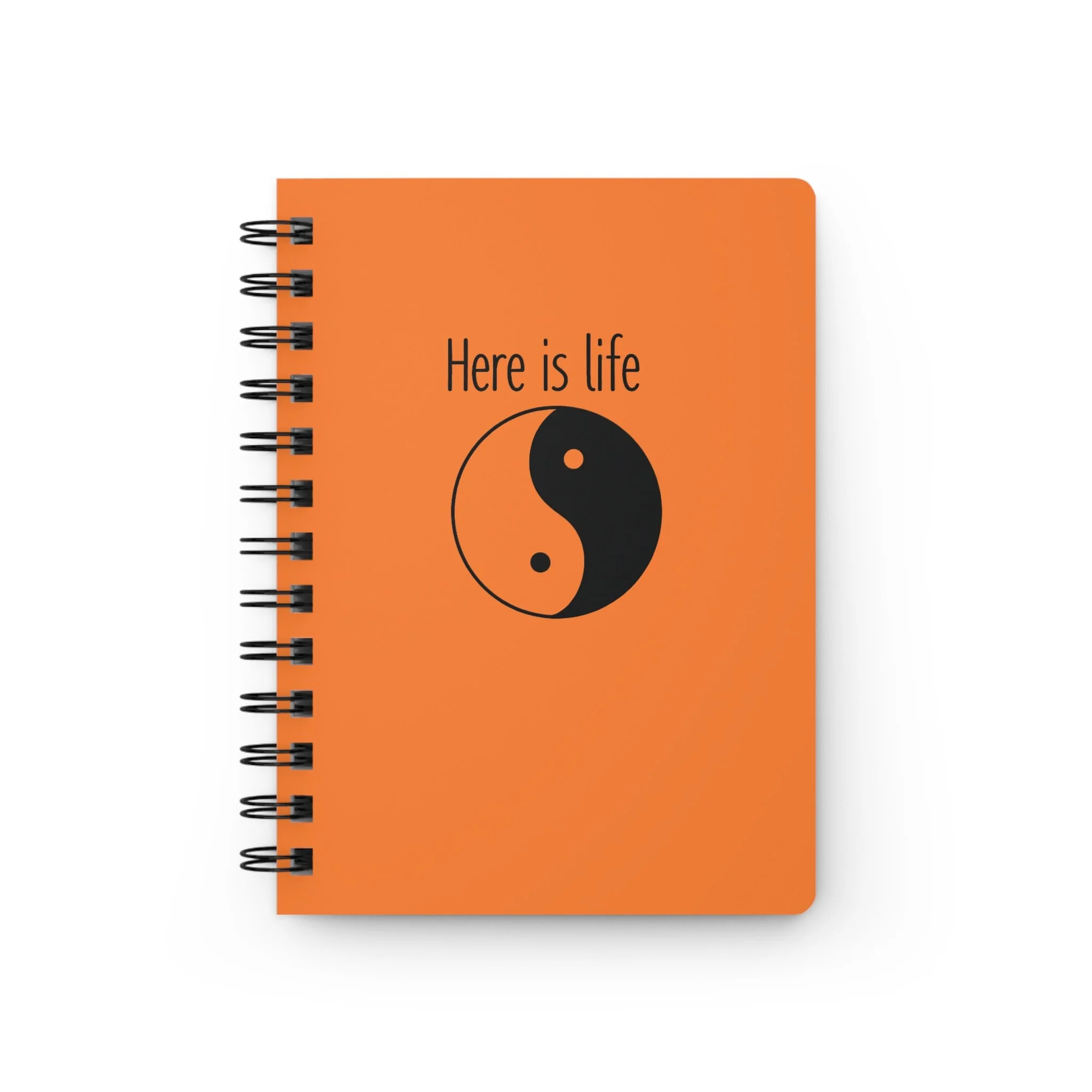 Here Is Life Yin Yang Spiral Notebook — Inspirational Orange Journal