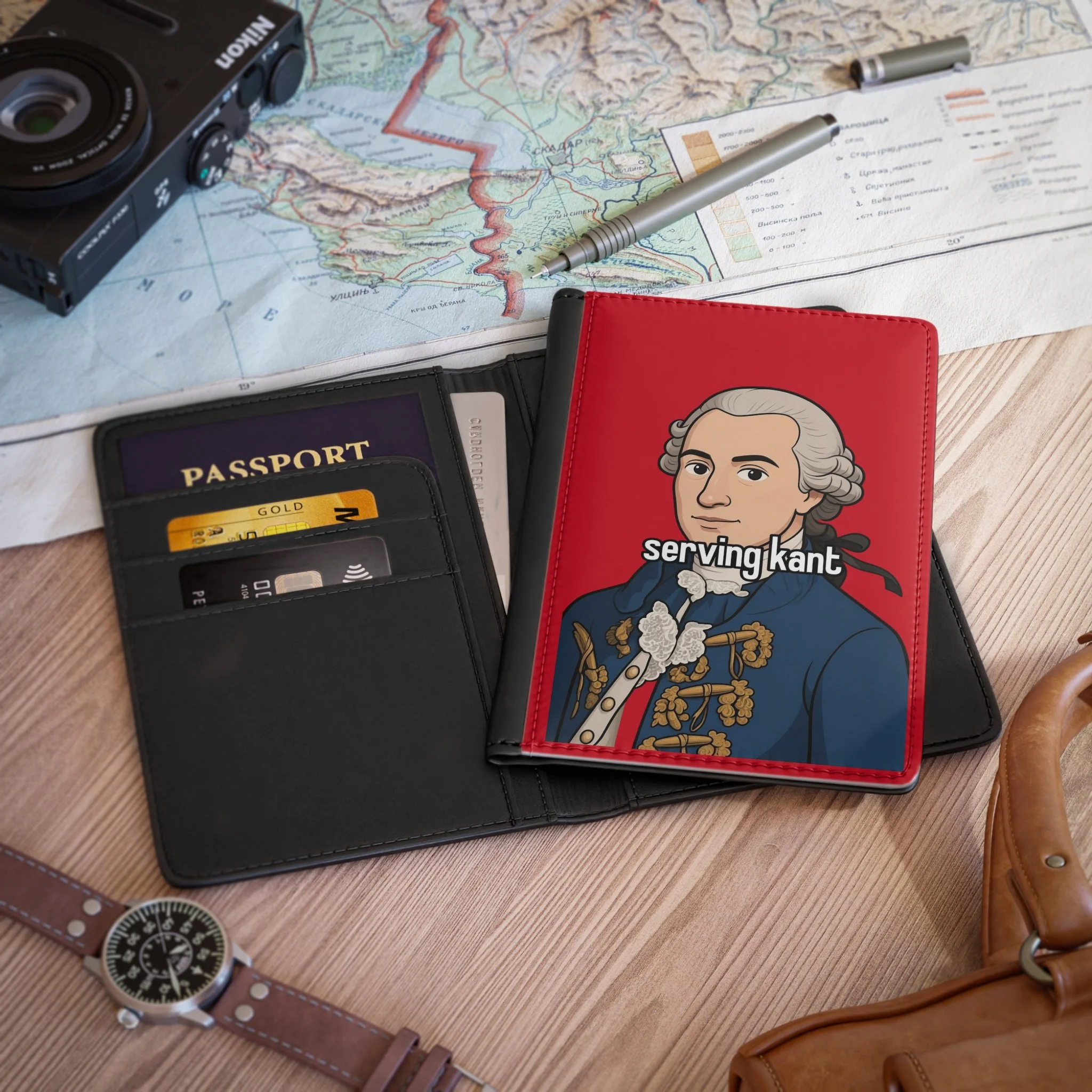 Slip your passport into a witty, well-made cover that travels as smoothly as your plans. This faux-leather passport cover pairs a bold red front with a playful illustrated portrait and the tongue-in-cheek label “serving kant,” adding a dash of intellectual humor to security and organization. Inside, neat pockets hold your passport, boarding pass, cards, and a little cash while the RFID-blocking lining helps keep digital pickpockets at bay. The slim profile fits most passports and slides easily into a carry-on, tote, or blazer pocket. Whether you’re hopping on a train or queuing at customs, this cover makes travel feel smart, secure, and a little more personal.