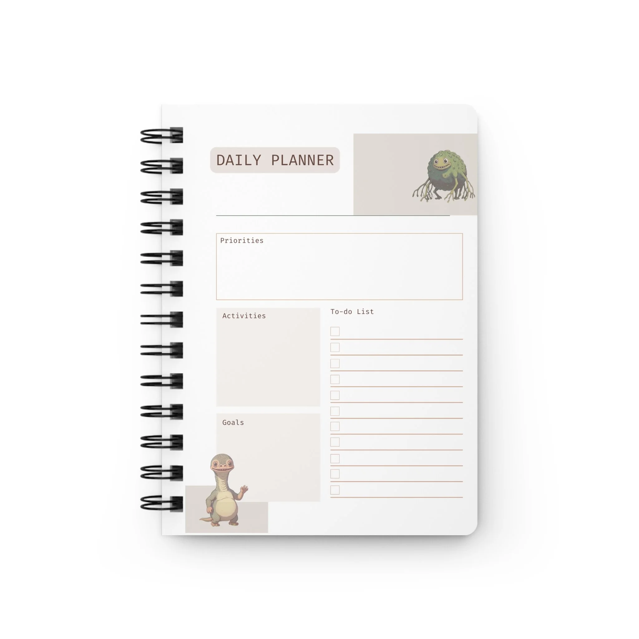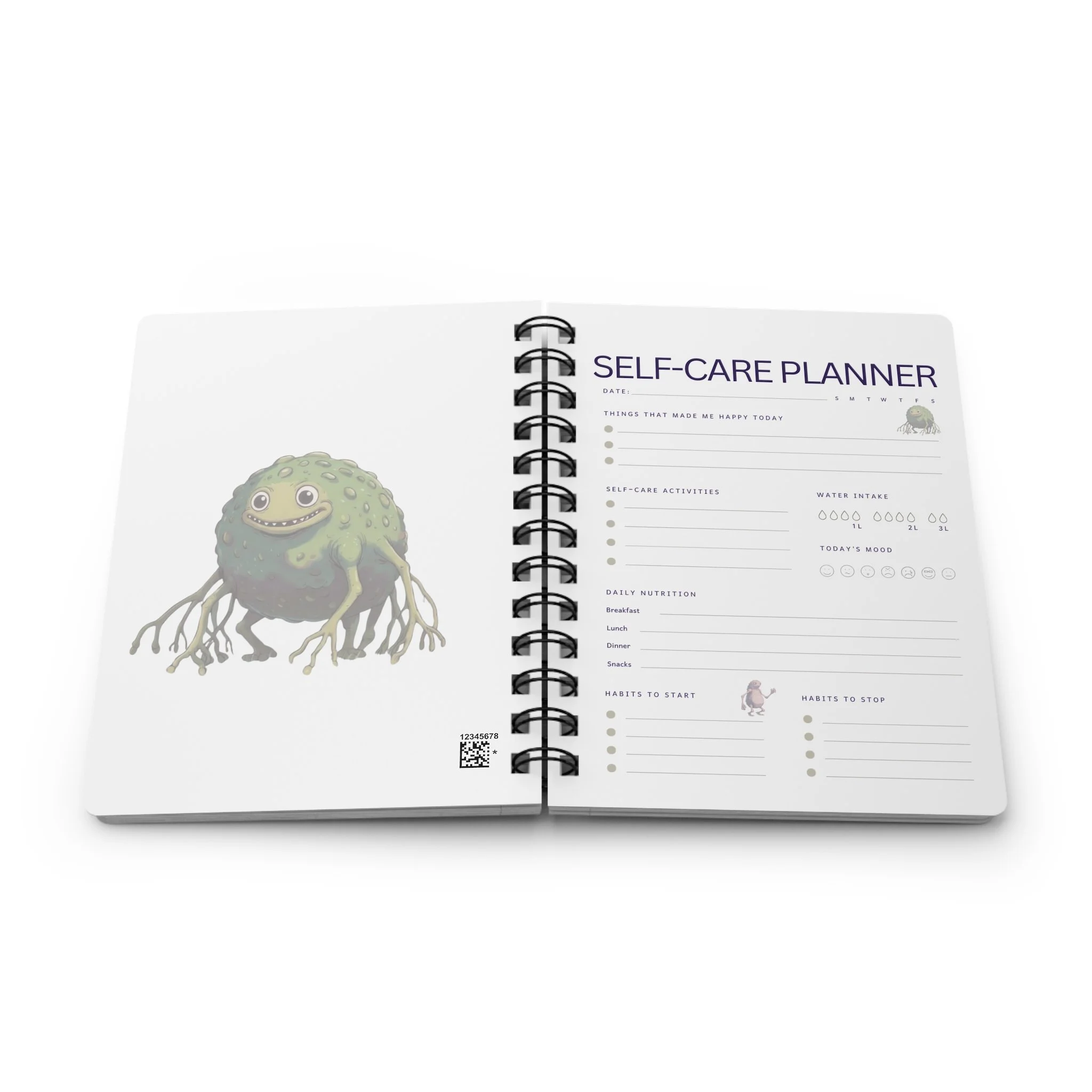 Self-Care Planner Spiral Notebook — Daily Wellness Journal with Cute Green Monster Design