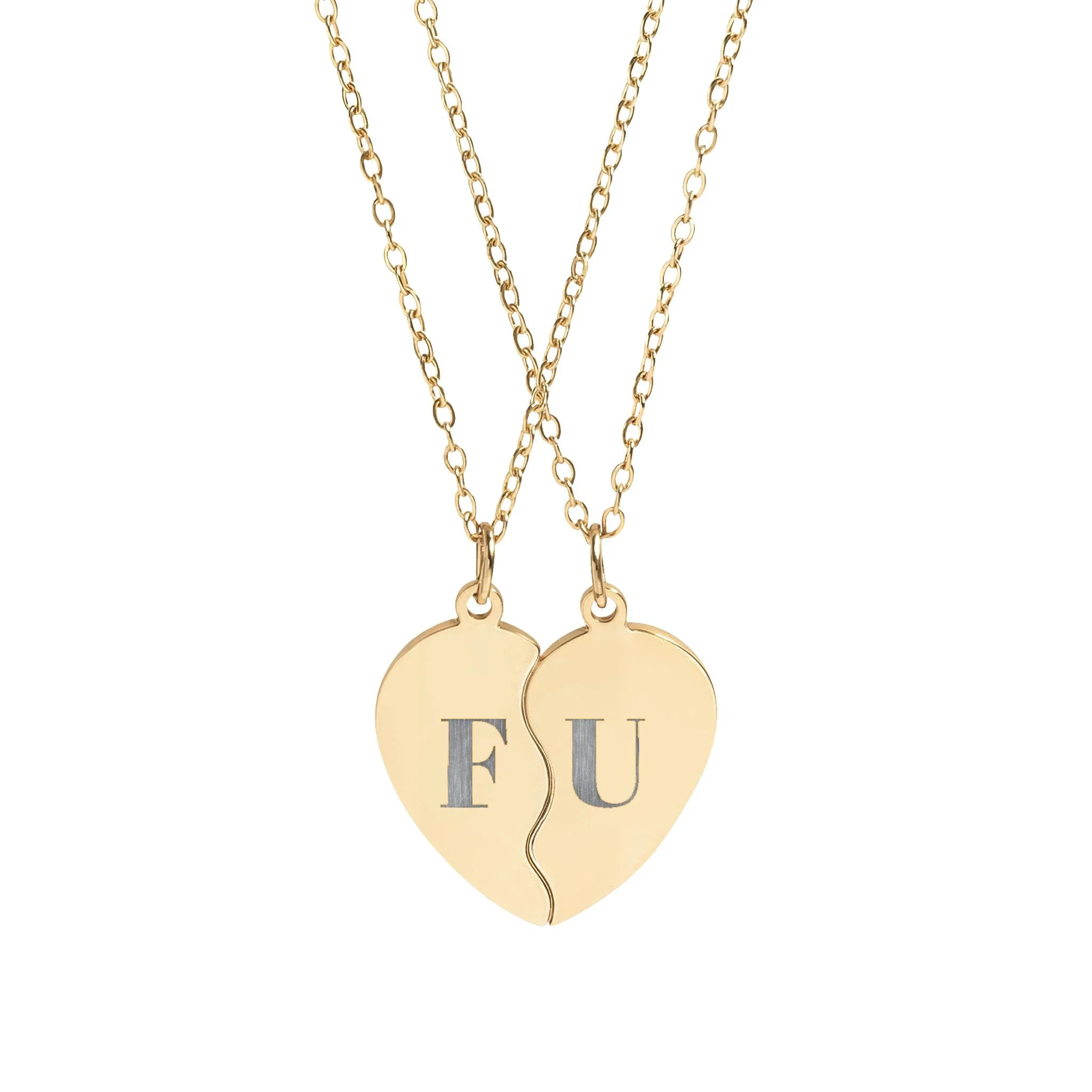 "FU" Engraved Break-Apart Heart Necklace Set — Personalized Best Friend/BFF Split Pendant